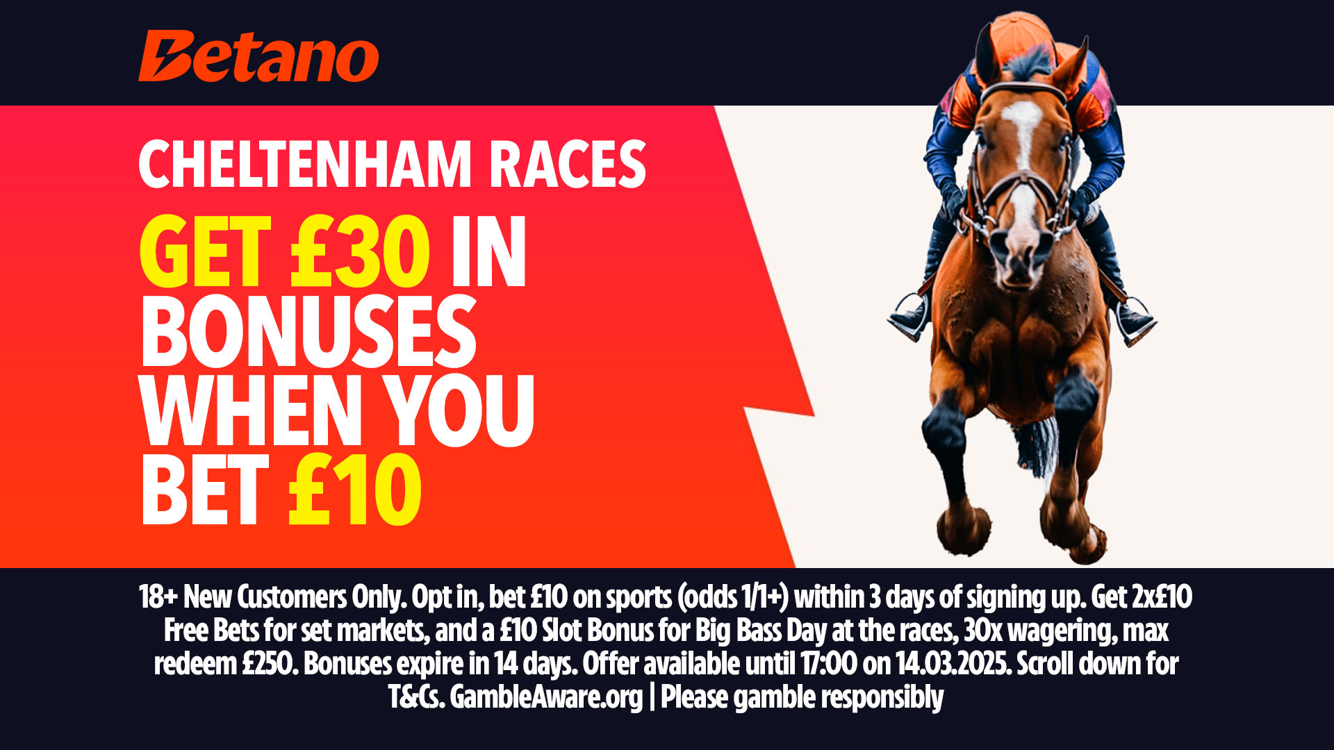 - Deposite e faça sua primeira aposta de pelo menos £10 em corridas de cavalo ou outros esportes